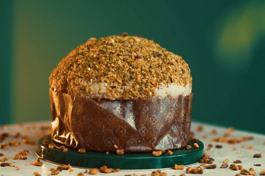 - Recheio cremoso de pistache: O interior do panettone é generosamente recheado com um creme de pistache que derrete na boca.